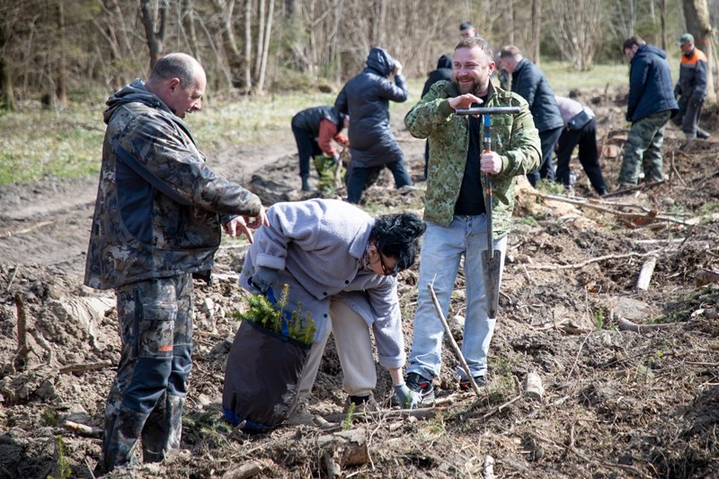 В пятницу, 10 апреля, к акции присоединились и подали пример другим руководители структурных подразделений райисполкома во главе с председателем Андреем Гордеем, а также лидеры общественных объединений и другие участники. В лесном массиве недалеко от деревни Гаути высадили ель и сосну.