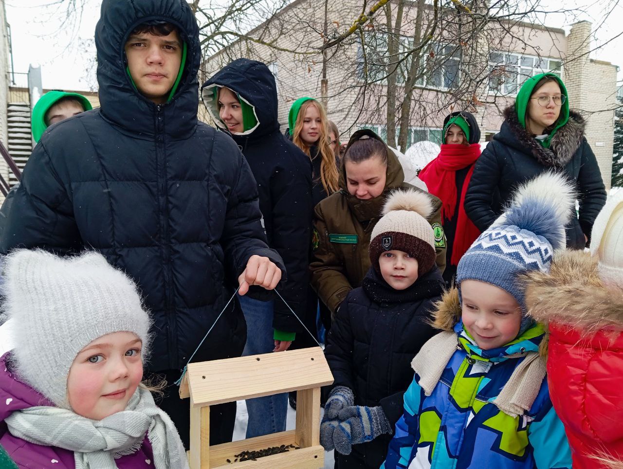 Учащиеся школьного лесничества «Лесной дозор» вместе с шефами Сморгонского опытного лесхоза отправились в гости к ребятам дошкольного лесничества «Медвежата». Наши юные лесники собственноручно приготовили питательные экобатончики из семечек подсолнечника, сушеных яблок, ягод, овсяных хлопьев. Важность таких кормушек в их «двойной заботе»: птицы получают калорийный обед, а после трапезы на участке остается чистая природа. Экоугощение развесили на ветвях деревьев. Шефы приготовили своим подопечным деревянные кормушки для зимующих птиц, которые прикрепили к березам на территории Сморгонского дошкольного центра развития ребенка. Далее путь лежал в дендропарк Сморгонского опытного лесхоза, где учащиеся «Лесного дозора» развесили классические деревянные кормушки и наполнили их угощением. Сделанные вручную, пахнущие свежей древесиной, они стали надежными столовыми, которые защитят корм от ветра и снега. Теперь у синиц, дубоносов, зеленушек, поползней и дятлов дендропарка есть точный адрес, где их всегда ждет поддержка.