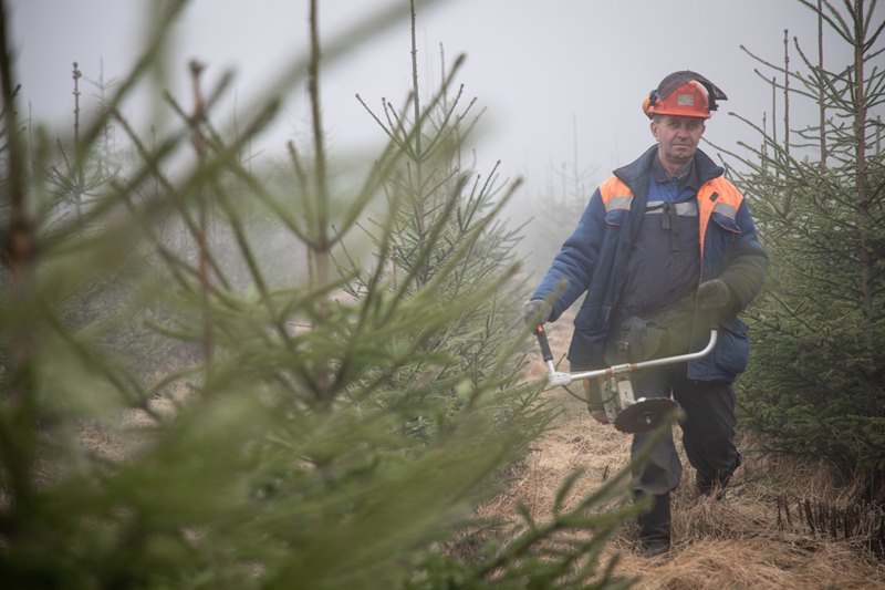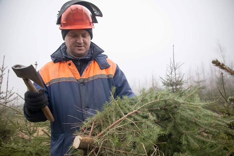ФОТОРЕПОРТАЖ: Как в Кревском лесничестве заготавливают новогодние ёлки