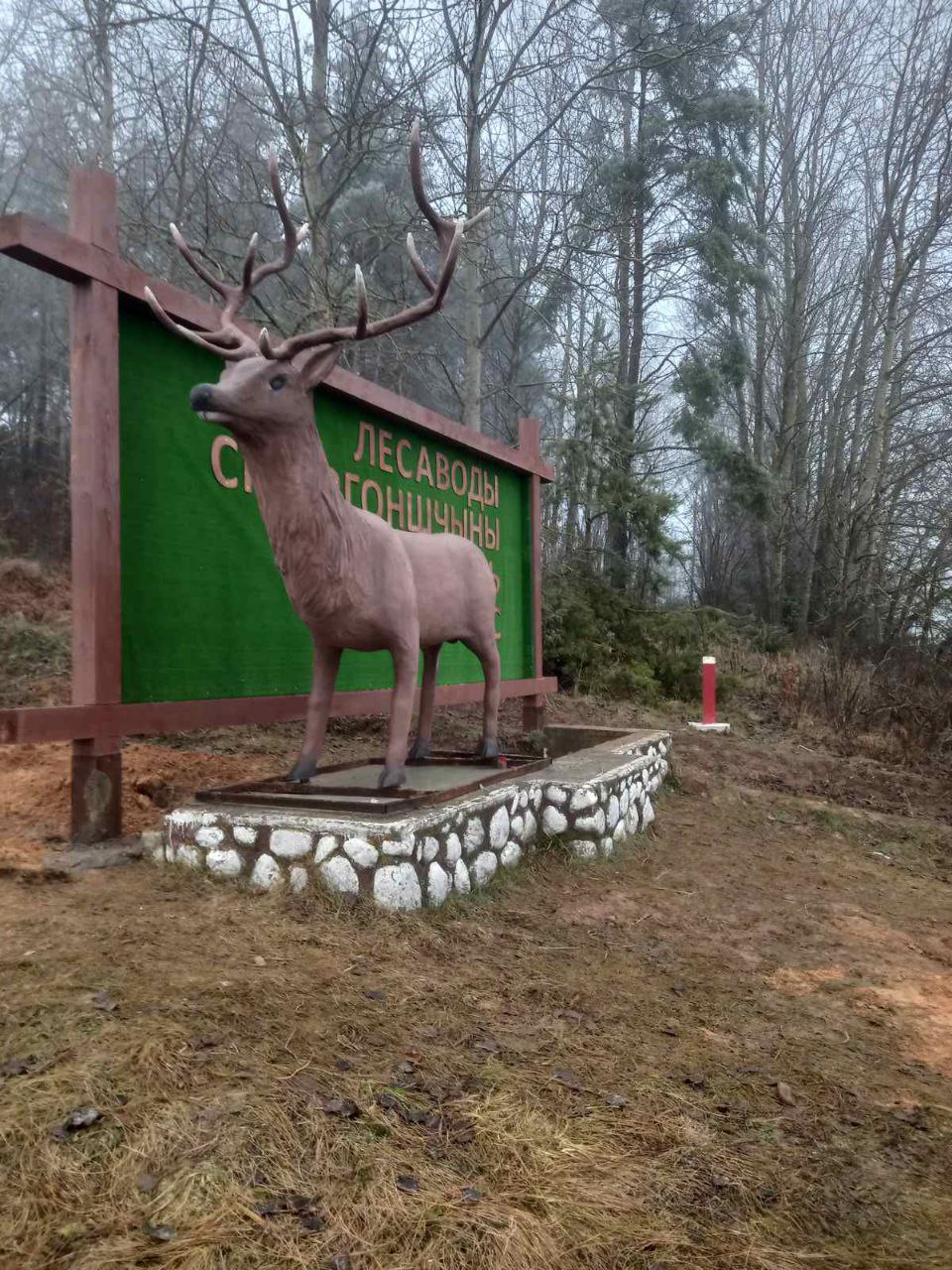 Лесаводы Смаргоншчыны вiтаюць вас! На дороге М7, въезд в Сморгонский район Гродненской области, работниками Сморгонского опытного лесхоза создана новая въездная группа