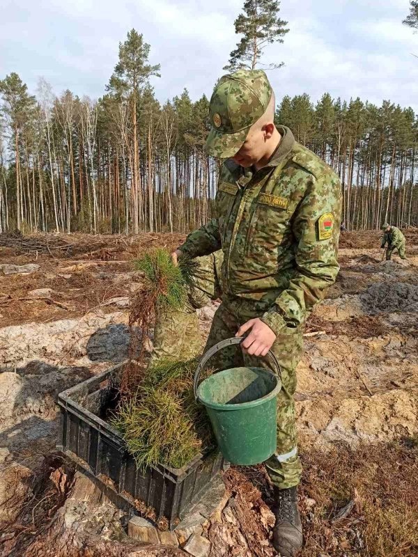 Личный состав учебного центра Института пограничной службы приняли участие в экологической акции «Лес! Дабро! Парадак!» (https://shliah.by/news/obshhestvo/news50903.html) и высадили саженцы сосен на территории Жодишковского лесничества.