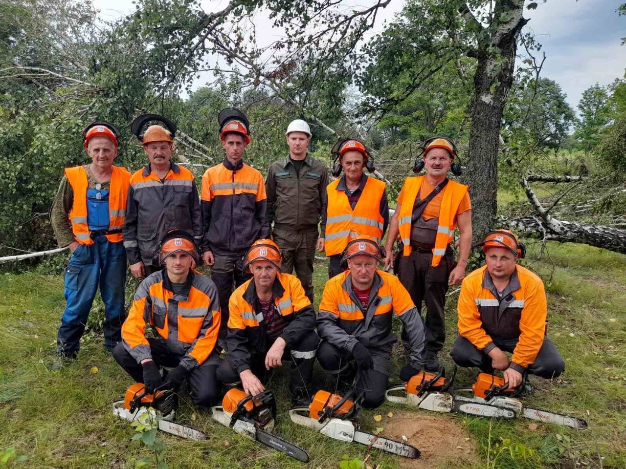 25 вальщиков леса из лесхозов Гродненского ГПЛХО оказывают помощь своим коллегам в Могилевской области, пострадавшей от сильнейшего июльского урагана. Стихия повредила порядка 3000 га лесного фонда региона.