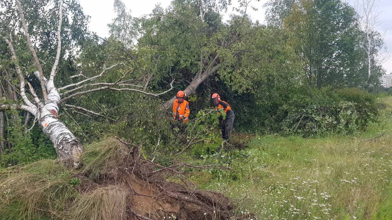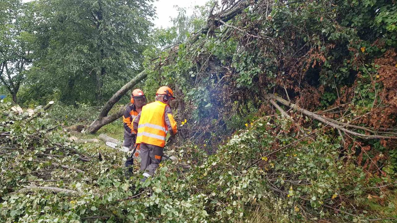 Наши работники включились в работы по ликвидации последствий непогоды. Они помогают непосредственно в городе Могилеве. Там удар стихии повалил около 5000 деревьев.