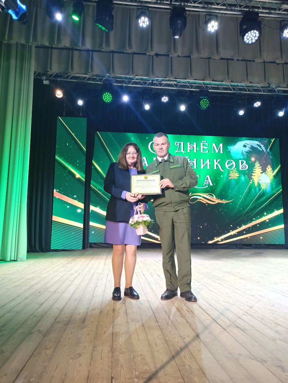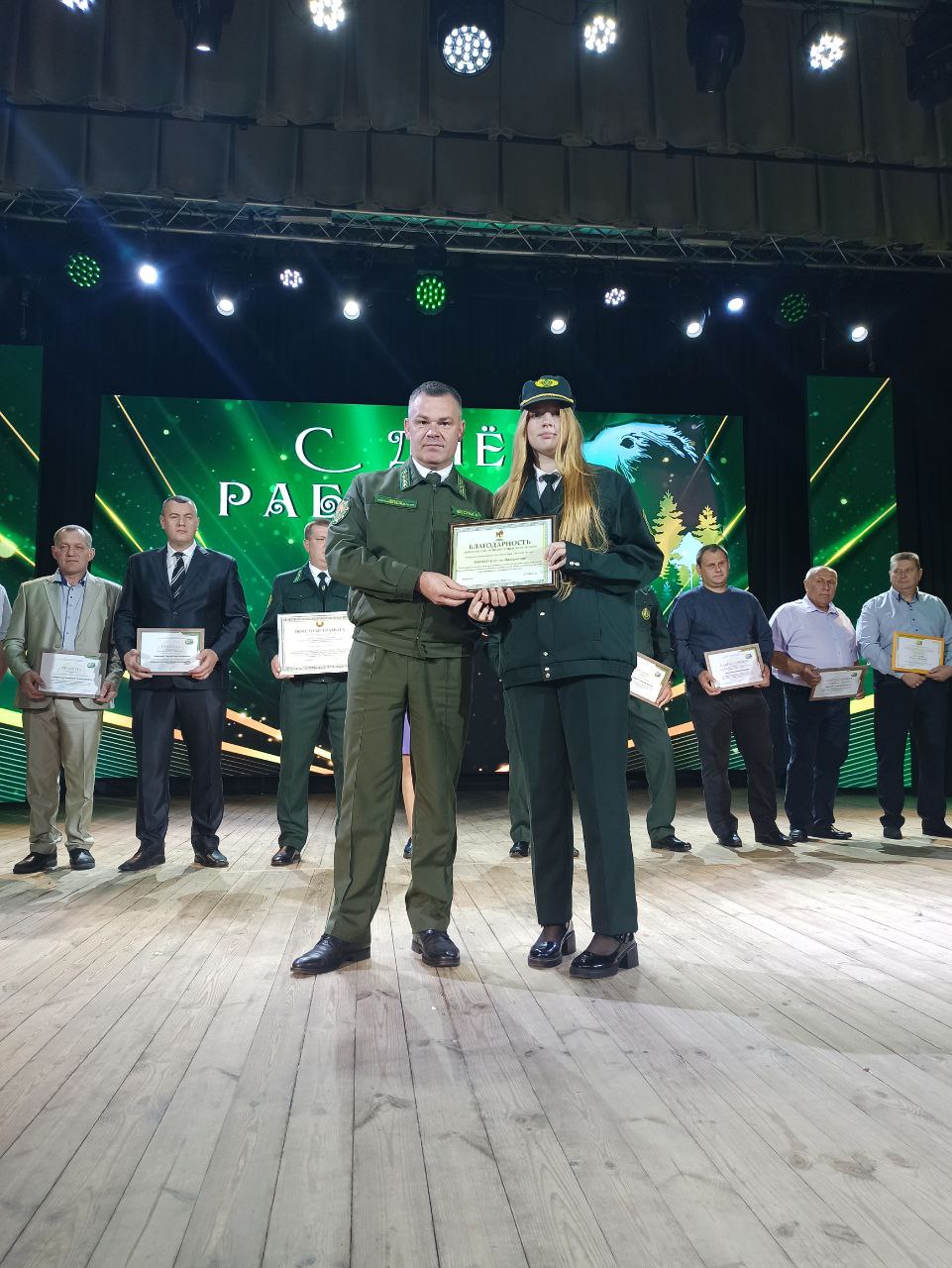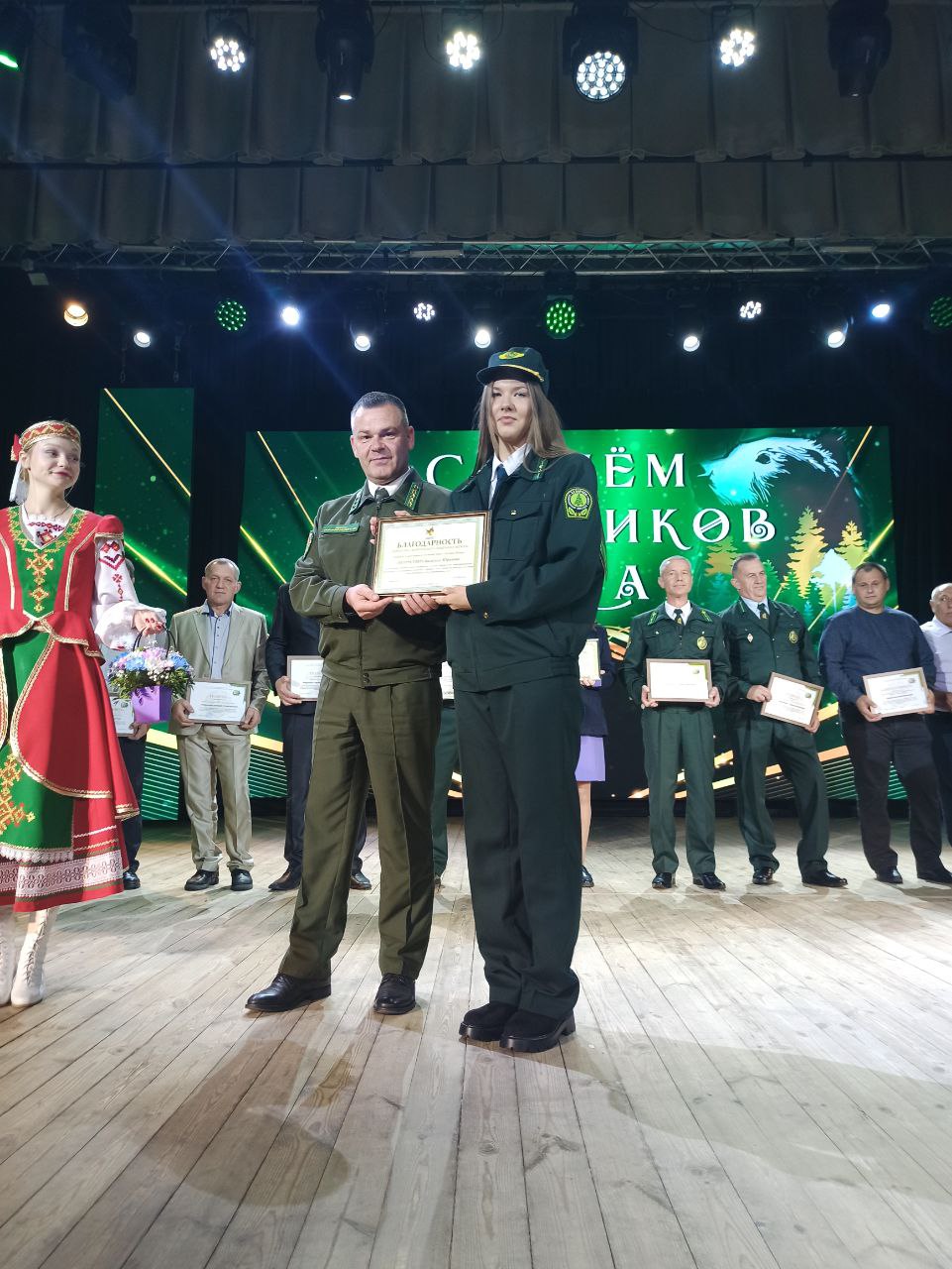 Торжественное мероприятие посвященное Дню работников леса прошло 18 сентября в Сморгони, лучшие труженики Сморгонского опытного лесхоза получат свои заслуженные награды. Юные лесоводы, члены дошкольного лесничества "Медвежата" и школьного лесничества "Лесной дозор" пришли поздравить своих старших коллег. Благодарность председателя Гродненского областного Совета депутатов ЯНКОВСКАЯ Екатерина Иосифовна бухгалтер Благодарность председателя Сморгонского районного исполнительного комитета БАРАНОВА Валентина Алексеевна бухгалтер Жодишковского лесничества Благодарность председателя Ошмянского районного исполнительного комитета ГАЙДУКЕВИЧУ Виктору Ивановичу вальщику леса Гравжишковского лесничества.