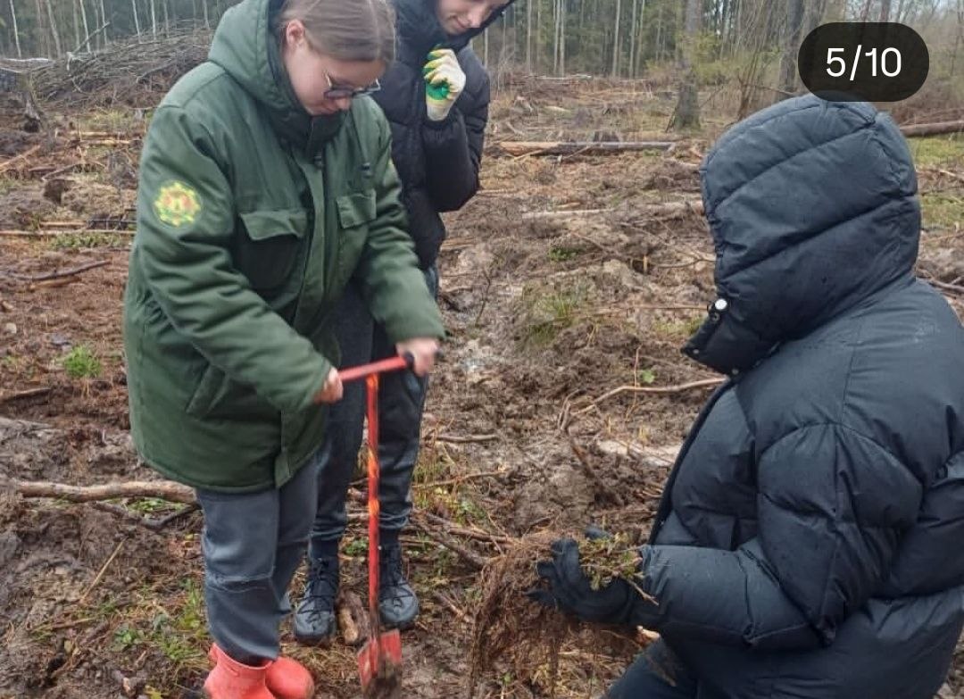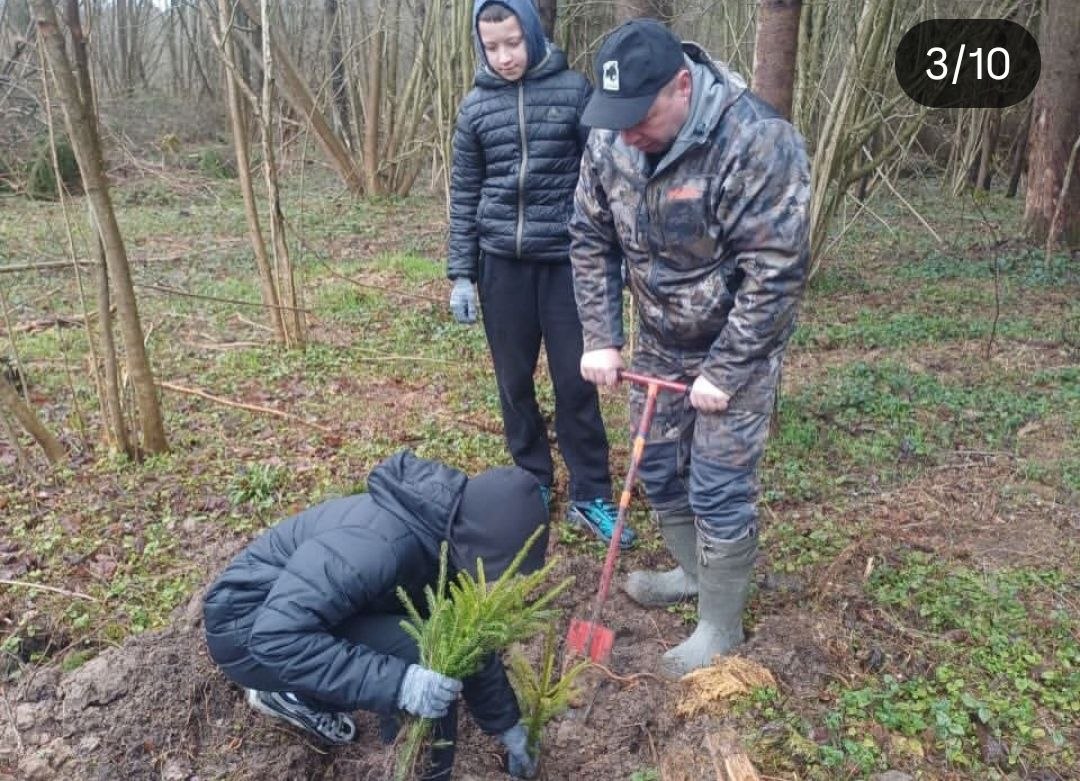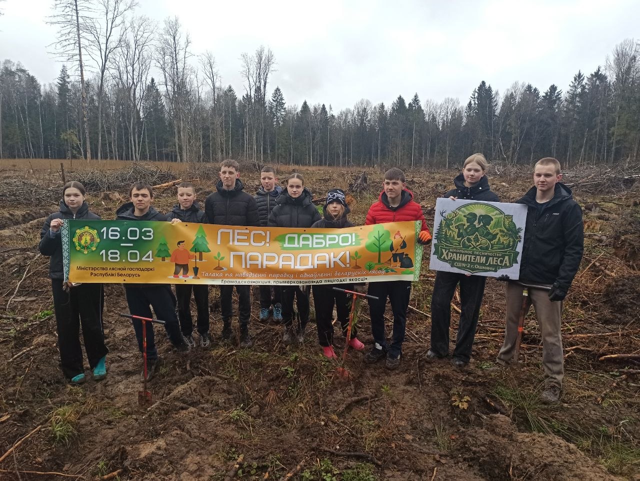 Участники школьного лесничества «Хранители леса» присоединились к акции «Лес! Дабро! Парадак!» и высадили молоденькие ёлочки и берёзки.