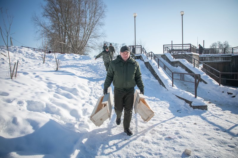 В рамках экологической акции «Покормим птиц зимой» (shliah.by/news/obshh...) Сморгонский опытный лесхоз, Сморгонская горрайинспекция природных ресурсов и охраны окружающей среды и Сморгонская районная организационная структура Белорусского общества охотников и рыболовов, осознавая эту проблему, изготовили и установили кормушки вблизи городского водоёма, где остаются зимовать утки и лебеди.