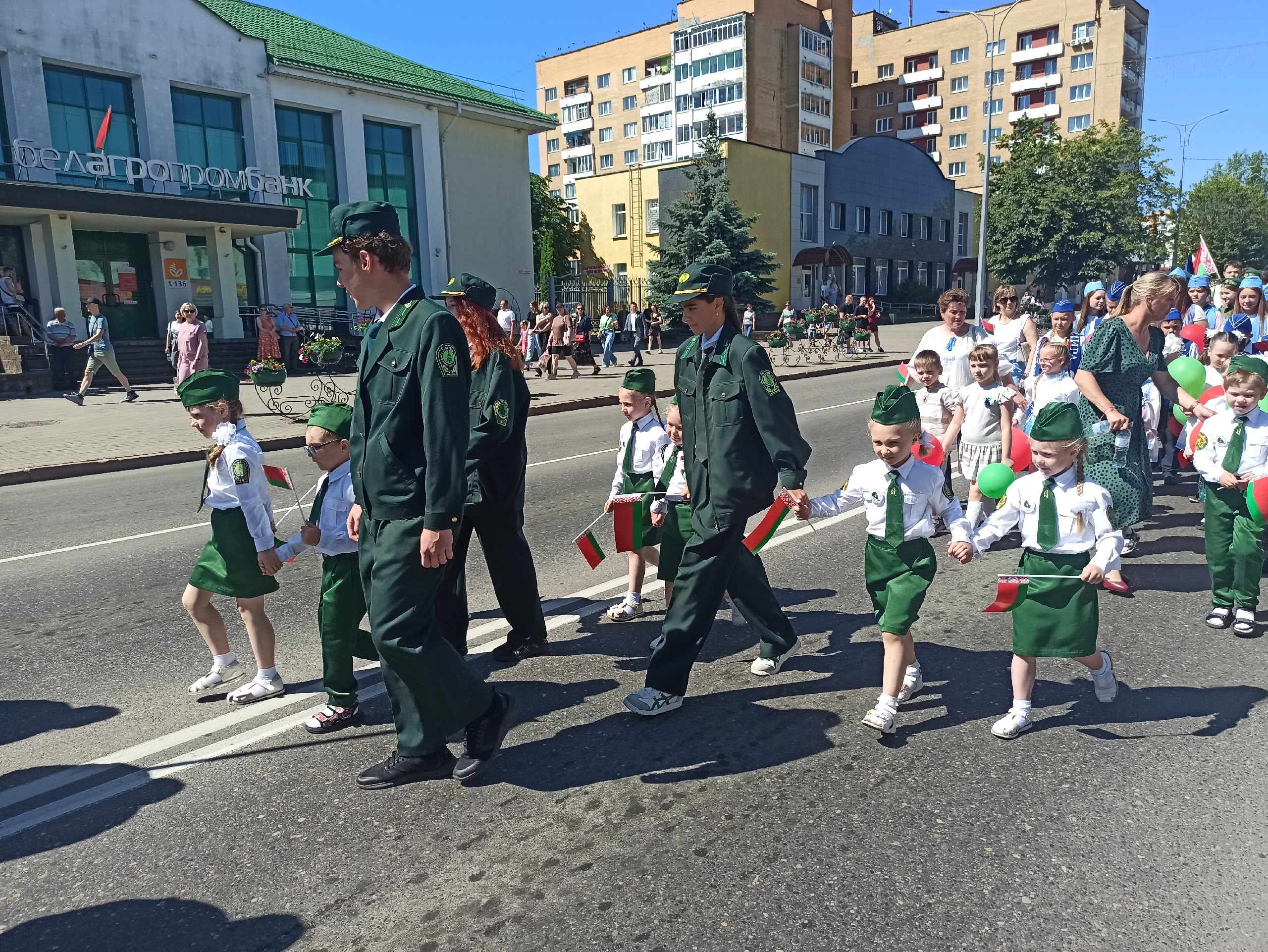 В главный праздник страны, День Независимости Республики Беларусь, три поколения лесоводов приняли участие в праздничных мероприятиях, члены дошкольного лесничества "Медвежата", члены школьного лесничества "Лесной дозор" и работники Сморгонского опытного лесхоза. Воспитание патриотизма с самого детства и преемственность поколений, одна из главных задач патриотов Беларуси.