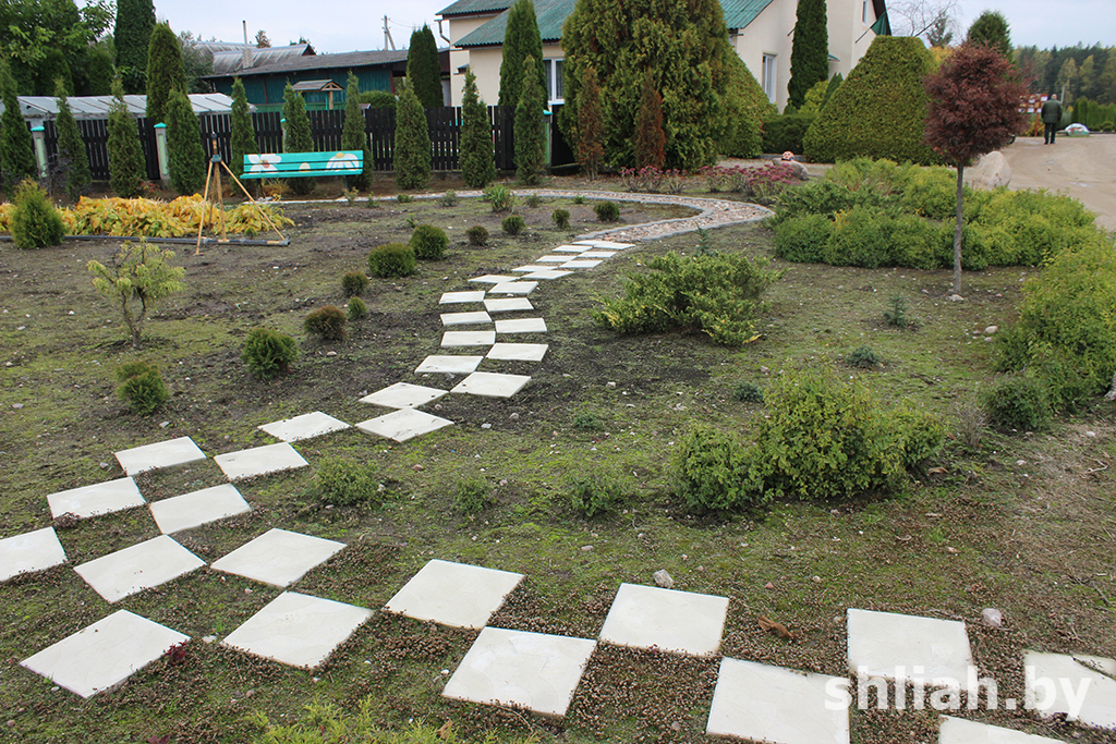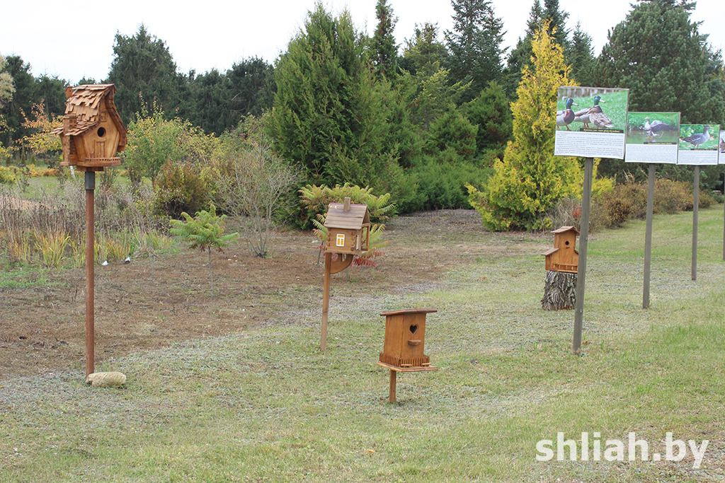 На экологической тропе есть дорожки, скамеечки, маленькие декоративные прудики, домик. Возле него будет место отдыха, во время которого можно поделиться впечатлениями, побеседовать о чем-то с детьми. Недалеко размещены фигуры зайца, медведя, других животных. Возле дороги установлены разнообразной формы скворечники и синичники, которые остались после проведенного лесхозом конкурса. Рядом – аллея с изображениями птиц, чуть дальше – животных.