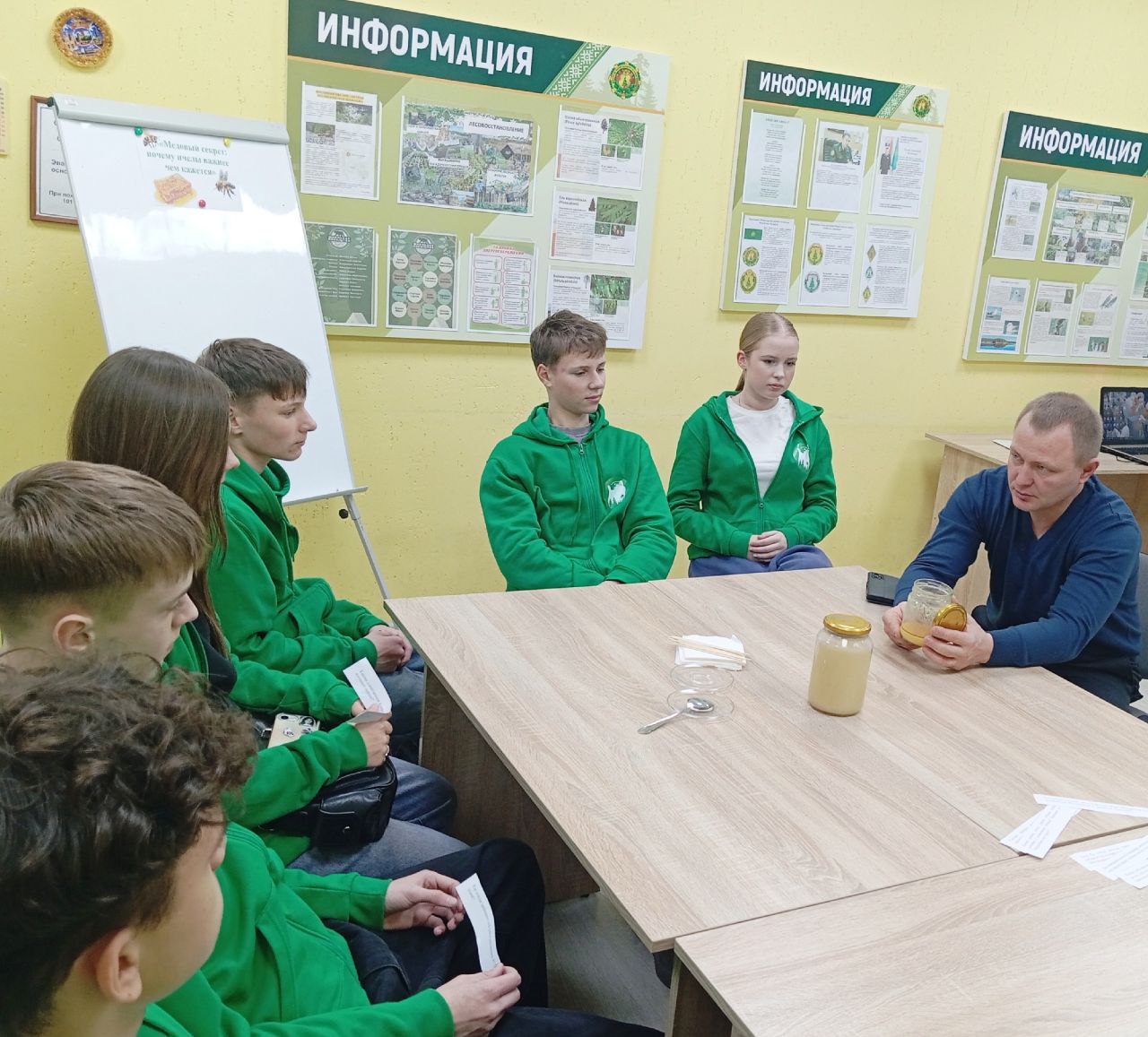 Юные лесничие услышали о современных угрозах для пчелиных семей – от пестицидов до клещей, что подчеркнуло важность бережного отношения к природе. Занятие не могло обойтись без дегустации! Ребята попробовали мёд первой и второй откачки, сравнили их вкус и аромат, понюхали и увидели разницу. Это позволило не только ощутить, но и понять, как время и разнообразие растений влияют на конечный продукт.